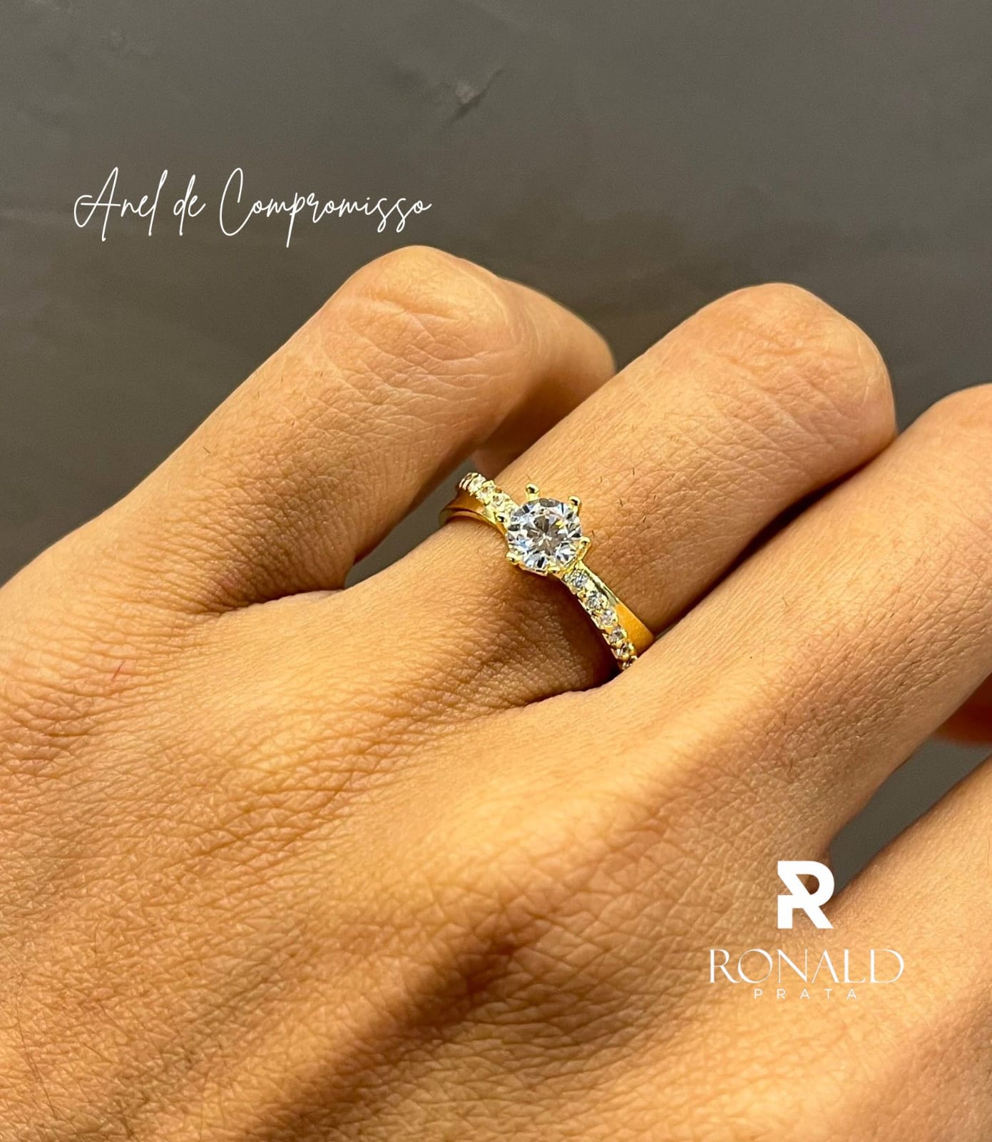 Anel Solitário Solitário com Bordas Cravejadas de Pedras Zirconias