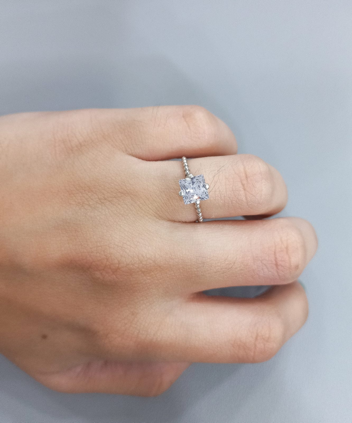 Anel Solitário Quadrado em Prata 925